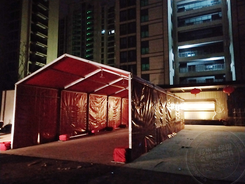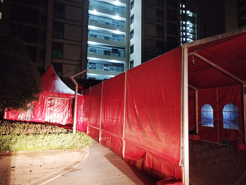 如圖,搭建在樓房前面的紅色篷房,顯得格外的喜慶,交房是一個喜慶而又神圣的節(jié)日,業(yè)主懷著愉悅的心情,來到樓盤處,看見紅色的篷房心情會更加的愉悅,紅色寓意著紅紅火火,寓意著未來在住房子的時候能夠日子紅火,日子開心。在璀璨熙湖交房中的篷房搭建,華熠僅僅用了半天時間就把紅色的大篷房搭建完成,可見華熠不僅有著搭建師傅為您搭建,在時間上也如約提前完成,為您節(jié)省了不少時間。不僅如此華熠還有著其他類型的篷房租賃服務(wù)。如:鄭州透明篷房租賃、鄭州玻璃篷房租賃、鄭州尖頂篷房租賃、鄭州球形篷房租賃等眾多類型供您選擇,以此來滿足您不同的活動現(xiàn)場需求。
