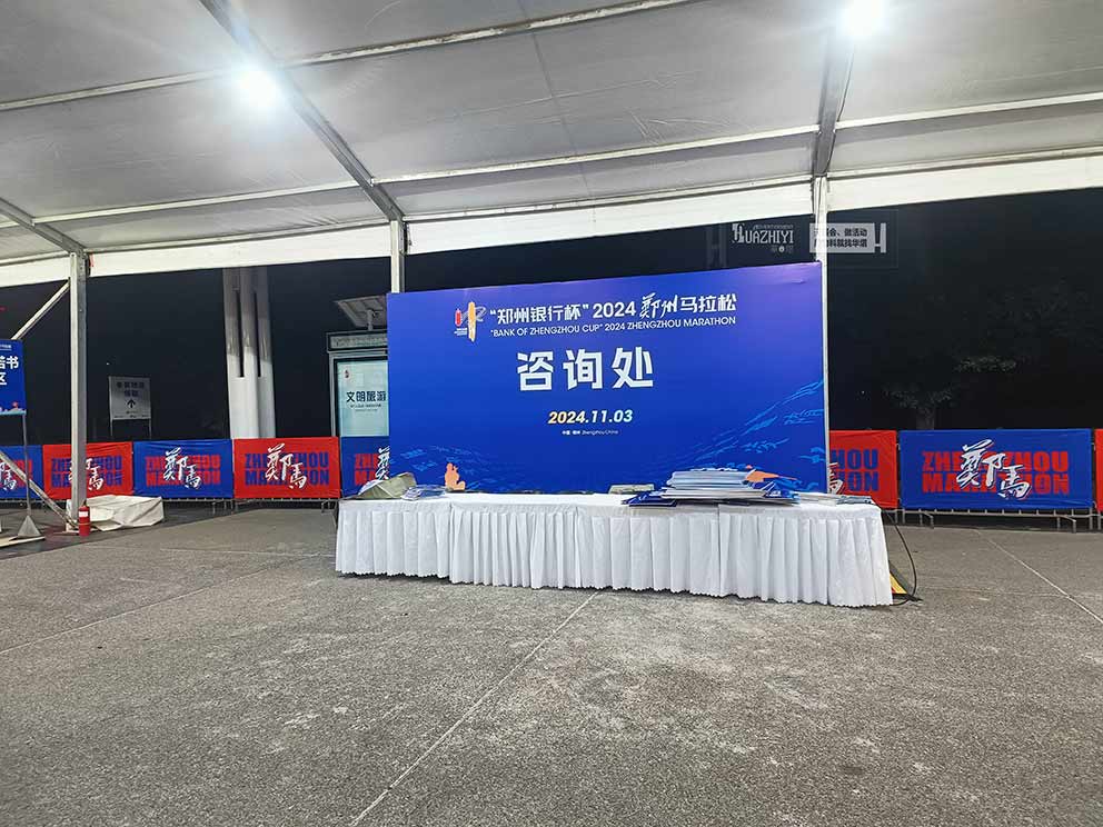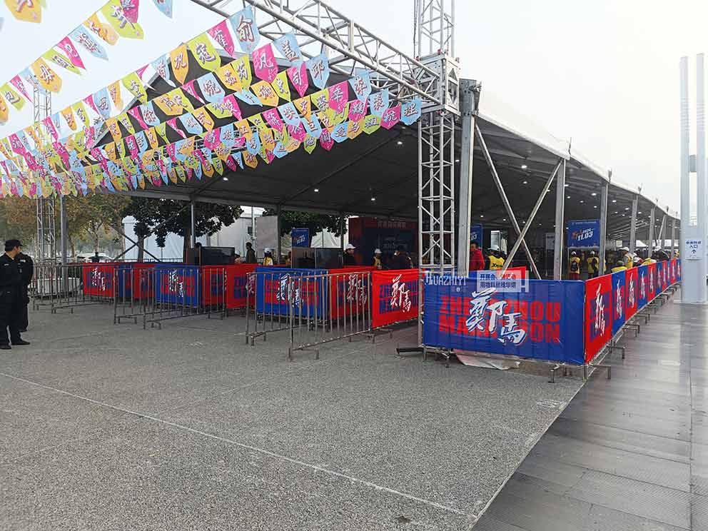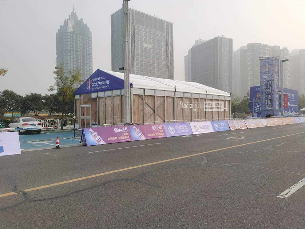 鄭州篷房租賃搭建2024鄭州馬拉松現(xiàn)場(chǎng)物資領(lǐng)取篷房。鄭州馬拉松已經(jīng)順利收官,我們?cè)賮?lái)回顧一下現(xiàn)場(chǎng)吧。此次活動(dòng)鄭州華熠提供了不少種類的物料,其中較大的有一座玻璃篷房、一座領(lǐng)取物資的大型篷房等。這座大型領(lǐng)取物資篷房為了確保參賽選手和觀眾能夠順利領(lǐng)取物資,空間大,指示牌醒目。