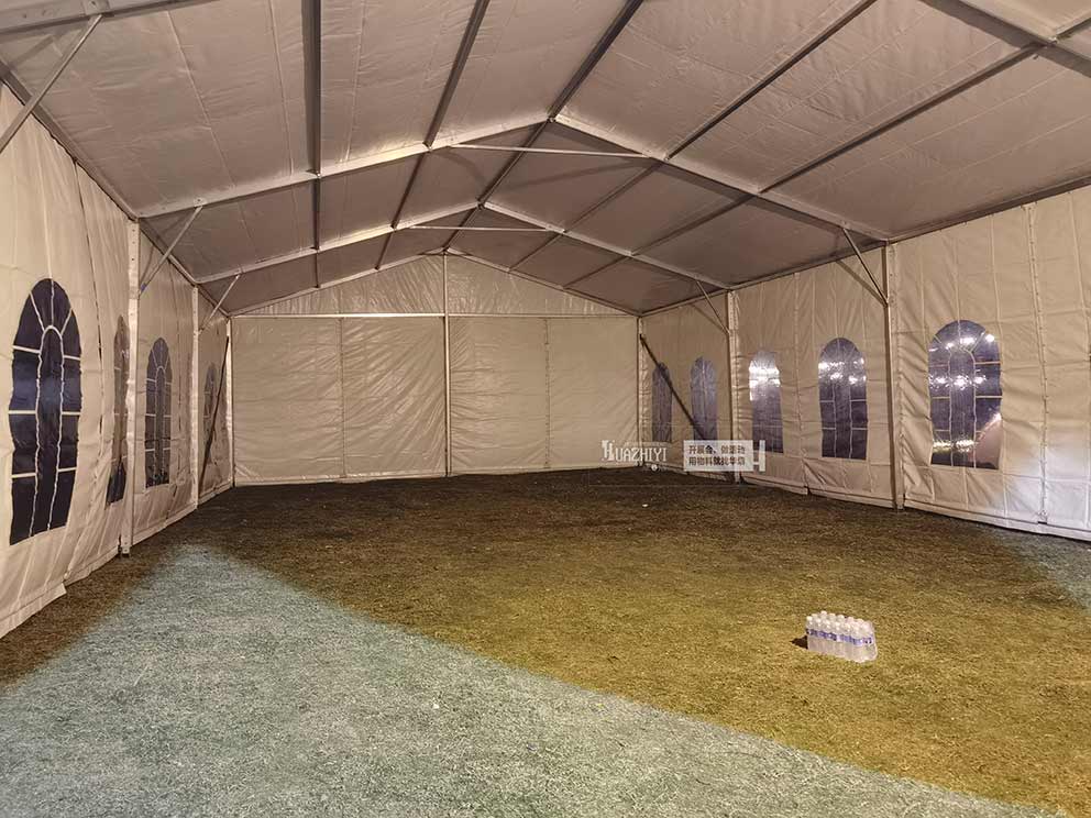 鄭州婚禮篷房出租公司憑借豐富的經(jīng)驗(yàn)和專業(yè)的技術(shù)團(tuán)隊(duì),在露營(yíng)地內(nèi)迅速搭建起一座人字形篷房。這座篷房不僅設(shè)計(jì)精美,而且材質(zhì)堅(jiān)固,能夠抵御風(fēng)雨,為露營(yíng)者提供一個(gè)安全、舒適的休息空間。無論是家庭出游、朋友聚會(huì),還是企業(yè)團(tuán)建,篷房都能滿足不同的露營(yíng)需求。