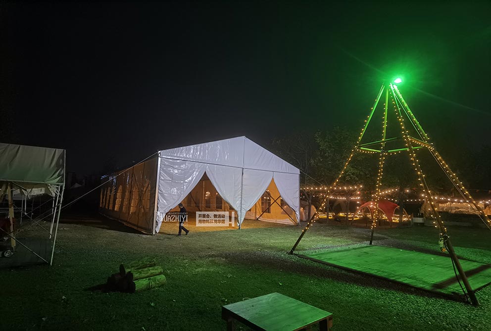 在篷房的搭建過程中,華熠注重與露營(yíng)地的自然環(huán)境相融合。我們巧妙地利用地形地貌,將篷房點(diǎn)綴在綠樹叢中,與周圍的自然風(fēng)光相得益彰。同時(shí),篷房?jī)?nèi)還配備了完善的設(shè)施,如床鋪、桌椅、照明等,讓露營(yíng)者在享受自然美景的同時(shí),也能感受到家的溫馨與便利。