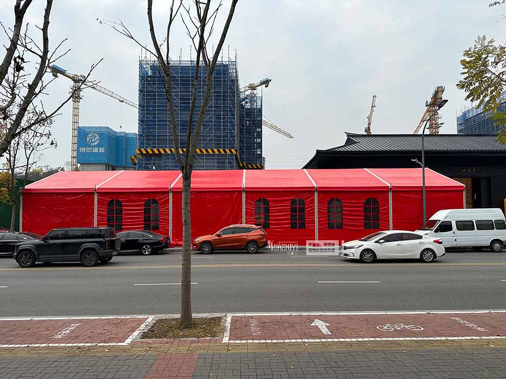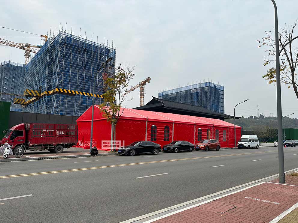首先,選址要合理。地產(chǎn)開盤篷房的搭建應(yīng)選擇平坦、堅實且無遮擋物的場地,確保篷房能夠穩(wěn)固搭建,避免因地質(zhì)條件不良或風(fēng)力過大導(dǎo)致的安全問題。同時,要考慮場地的交通便捷性,確保人員和車輛的順利出入。