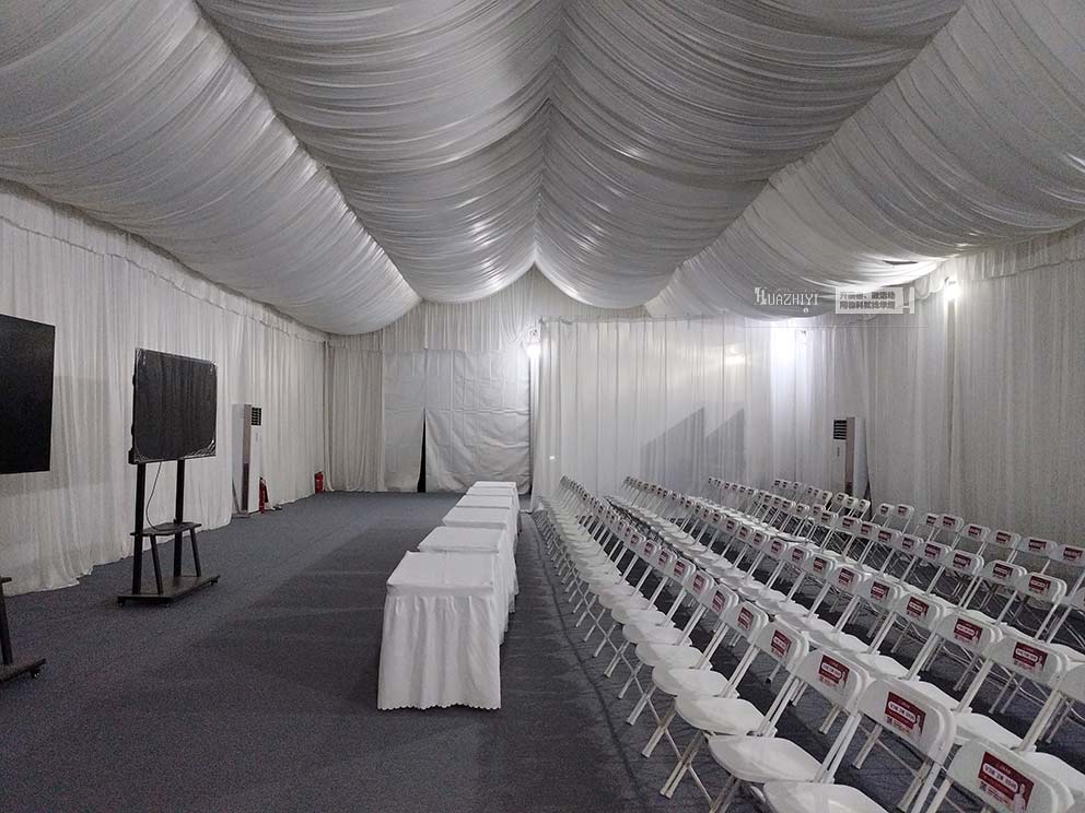 5.完善配套設(shè)施:確保篷房?jī)?nèi)的照明、通風(fēng)、音響等設(shè)施完善,為參觀者提供舒適的環(huán)境。同時(shí),設(shè)置休息區(qū)、餐飲區(qū)等,滿足參觀者的基本需求。