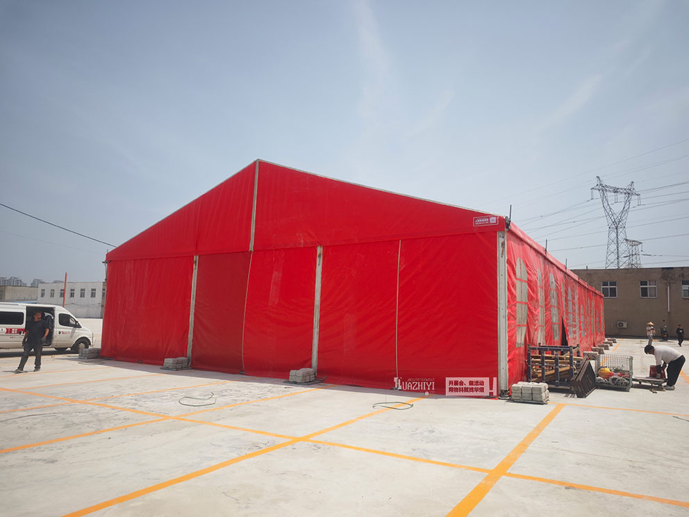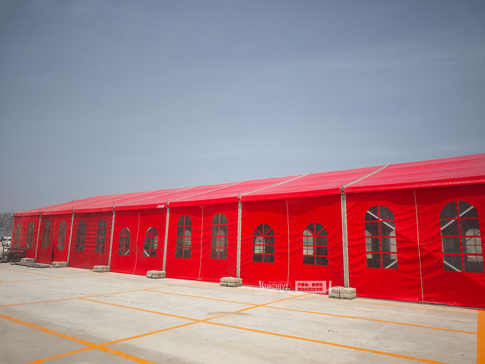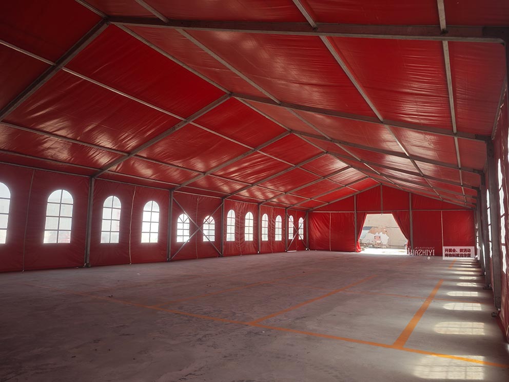 婚慶篷房是夏季婚禮市場(chǎng)的熱門之選。以紅色篷房為例,其鮮艷色彩契合傳統(tǒng)婚慶氛圍,鋁合金框架搭配雙層PVC篷布。內(nèi)部可靈活配置水晶吊燈、紗幔、地毯等裝飾,結(jié)合空調(diào)系統(tǒng),打造舒適浪漫的婚禮空間。鄭州華熠公司曾為多場(chǎng)戶外婚禮提供此類篷房,滿足新人對(duì)時(shí)效與美學(xué)的雙重需求。