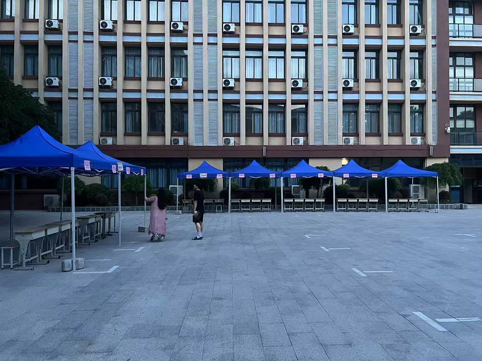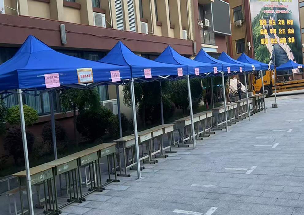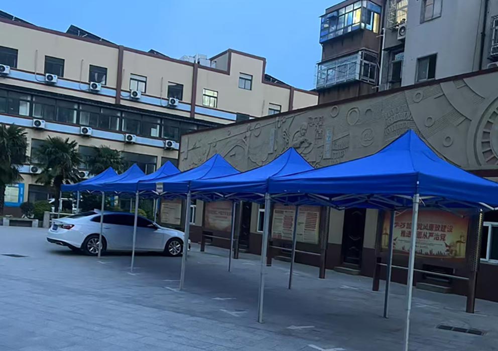 鄭州科技工業(yè)學校的校園里,幾頂藍色折疊帳篷在陽光下泛著沉穩(wěn)的光澤。這是鄭州篷房出租公司為校園活動布下的臨時空間,靛藍色的篷布與周圍的綠樹、紅磚教學樓形成鮮明對比,卻又以恰到好處的尺度融入校園環(huán)境,為師生們提供著一片可遮陽避雨的實用角落。